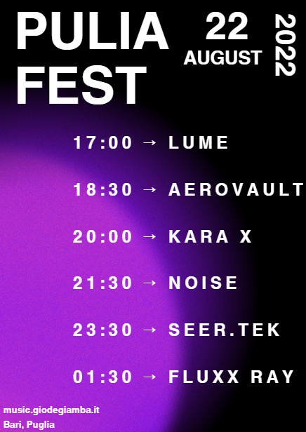 Il festival della musica pugliese Buy Tickets PULIA fest SUONO PURO CONNESSIONE FREEDOM LIVE STAGE UN SOLO PALCO, MILLE SUONI. DOVE OGNI RITMO TROVA LA SUA VOCE. 12 February, 2025 Electric night parade Red Rocks Amphitheatre, Denver 7:00 p.m. – 9:30 p.m. Buy Tickets 14 February, 2025 Midnight rhythms tour The Fillmore, San Francisco 8:00 p.m. – 10:15 p.m. Buy Tickets 16 February, 2025 Neon soul experience House of Blues, Chicago 7:30 p.m. – 9:45 p.m. Buy Tickets Buy Tickets i nostri eventi DOVE IL SUONO DIVENTA IMMAGINE pulia fest 2025 © NO NORMALFESTIVALPULIAFEST2025 ISCRIVITI ALLA NOSTRA NEWSLETTER Rimani aggiornato sui prossimi eventi PULIA LA TUA ENERGIA, IL NOSTRO FESTIVAL Download on the App Store Get it on Google Play